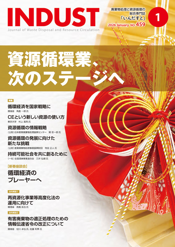 現在、改正作業が進められている廃棄物処理法や2025年11月に本格施行された再資源化事業等高度化法などを背景に、資源循環業は次のステージに進んでいかなければならない時期を迎えている。1月号では「資源循環業の発展に向けて」をテーマに、(公社)全国産業資源循環連合会、同連合会の女性部協議会、青年部協議会および全国産業資源循環連合会政治連盟の各代表者による座談会のほか、環境省、関係団体、学識者の寄稿文を掲載する。